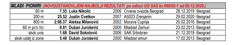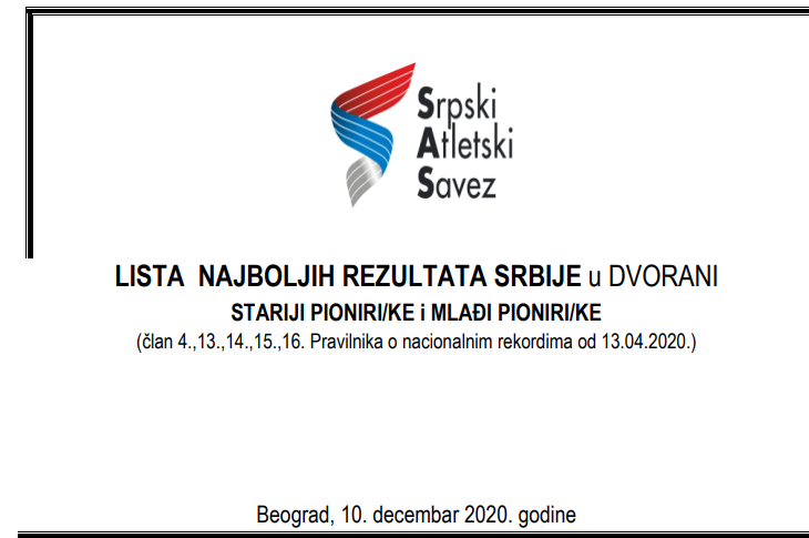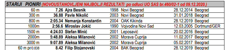 Алекса Милановић, атлетичар ОАК „Морава“ и репрезентативац Србије нашао се на листи државних рекорда и најбољих дворанских резултата Србије. Листа најбољих резултата установљена је на основу Правилника о националним рекордима у атлетици Српског атлетског савеза а Алекса је најбоље резултате остварио у чак четири дисциплине у три различите категорије.