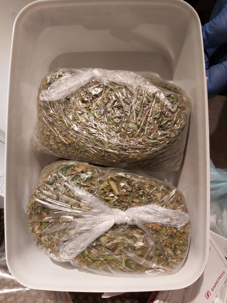 Полиција је, поред стабљика и упаковане суве материје спремне за употребу, у стану осумњичене пронашла и 687 саксија, две ваге за прецизно мерење, вентилаторе, термостате, ручну машину за млевење марихуане и препарате за узгајање, прехрану и заштиту биљака.