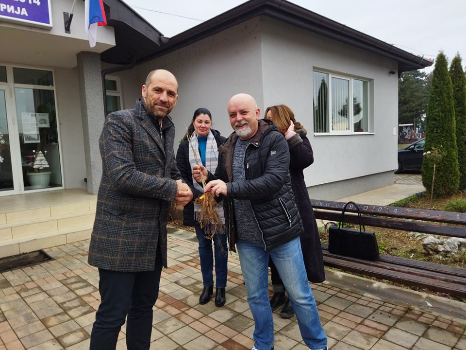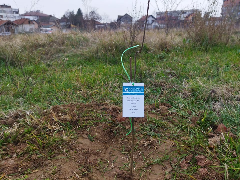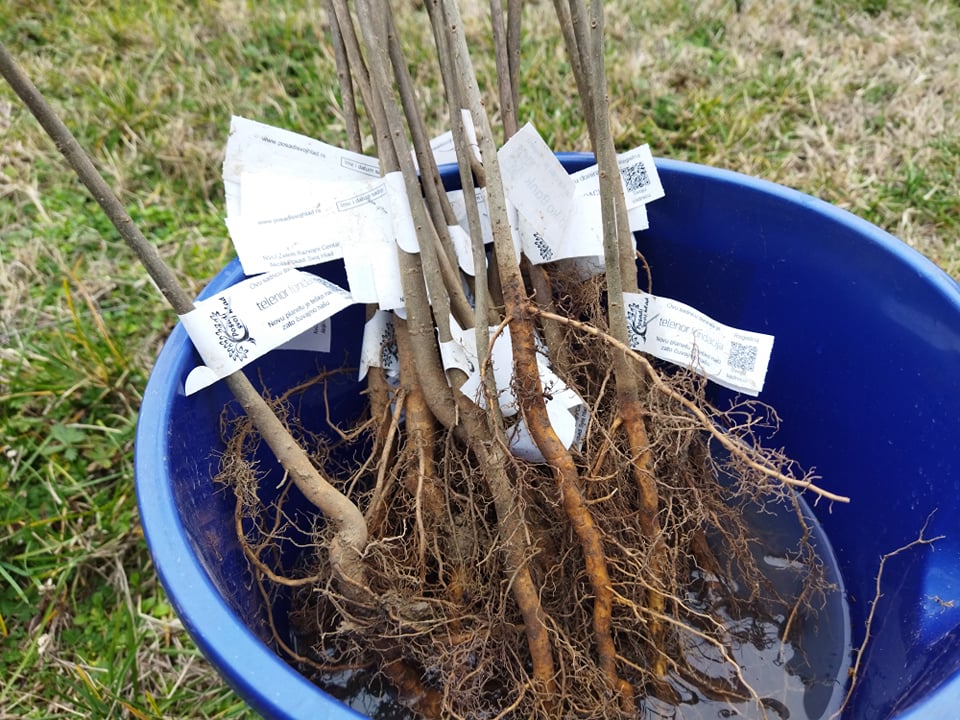 Свака садница симболично је обележена везицама са картицама на којима су имена оних који су их засадили.